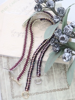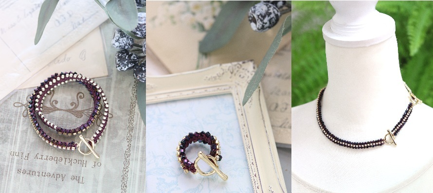 ダイヤレーンとえび編みコードのブレス/リング〜ボルドー&G(オンライン講習会対象商品) [1451ーBG/1468-BG]